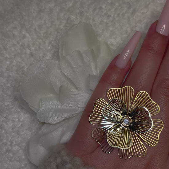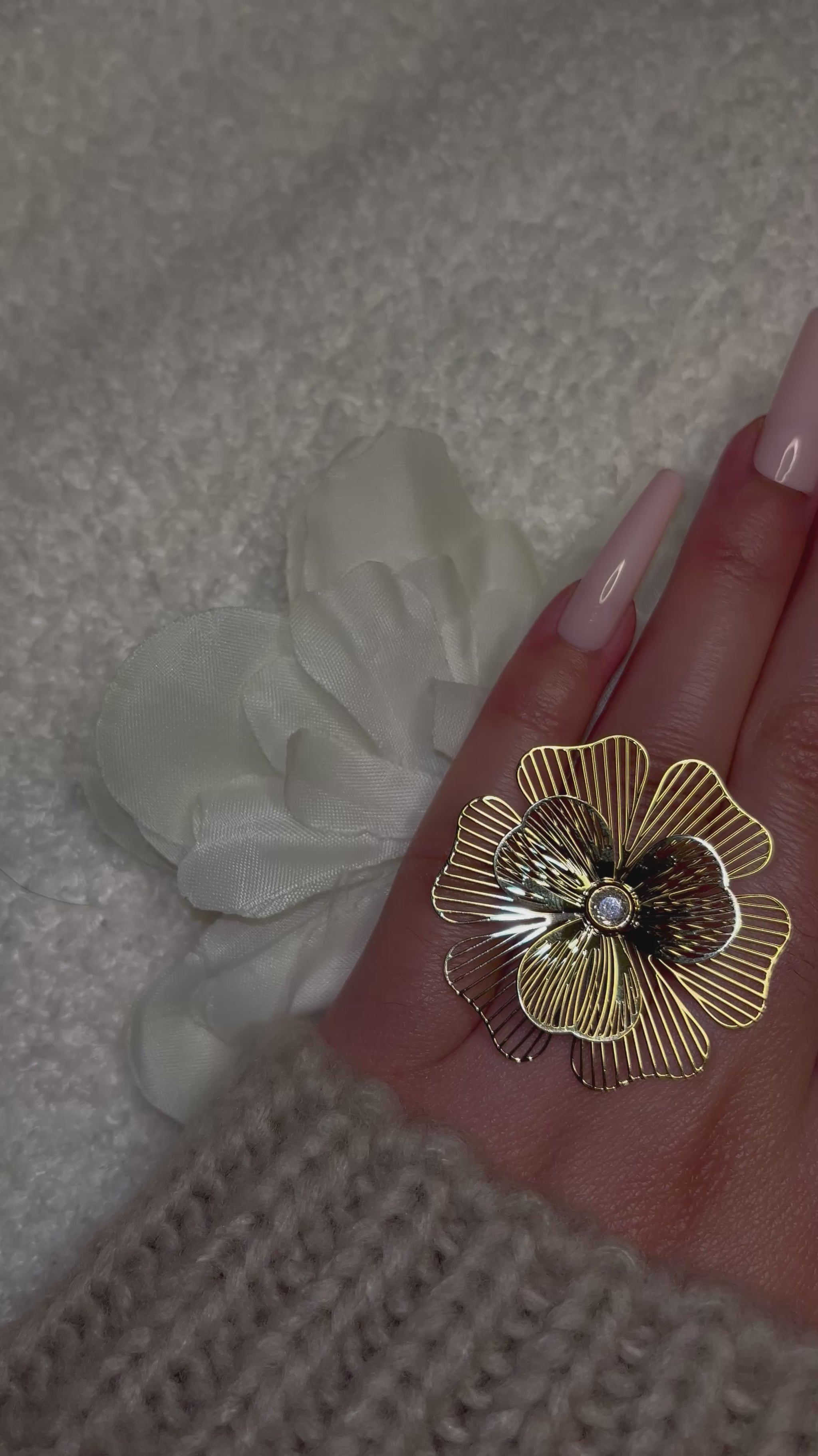 Je vous propose cette magnifique bague de couleur doré en acier inoxydable en forme de grosse fleur