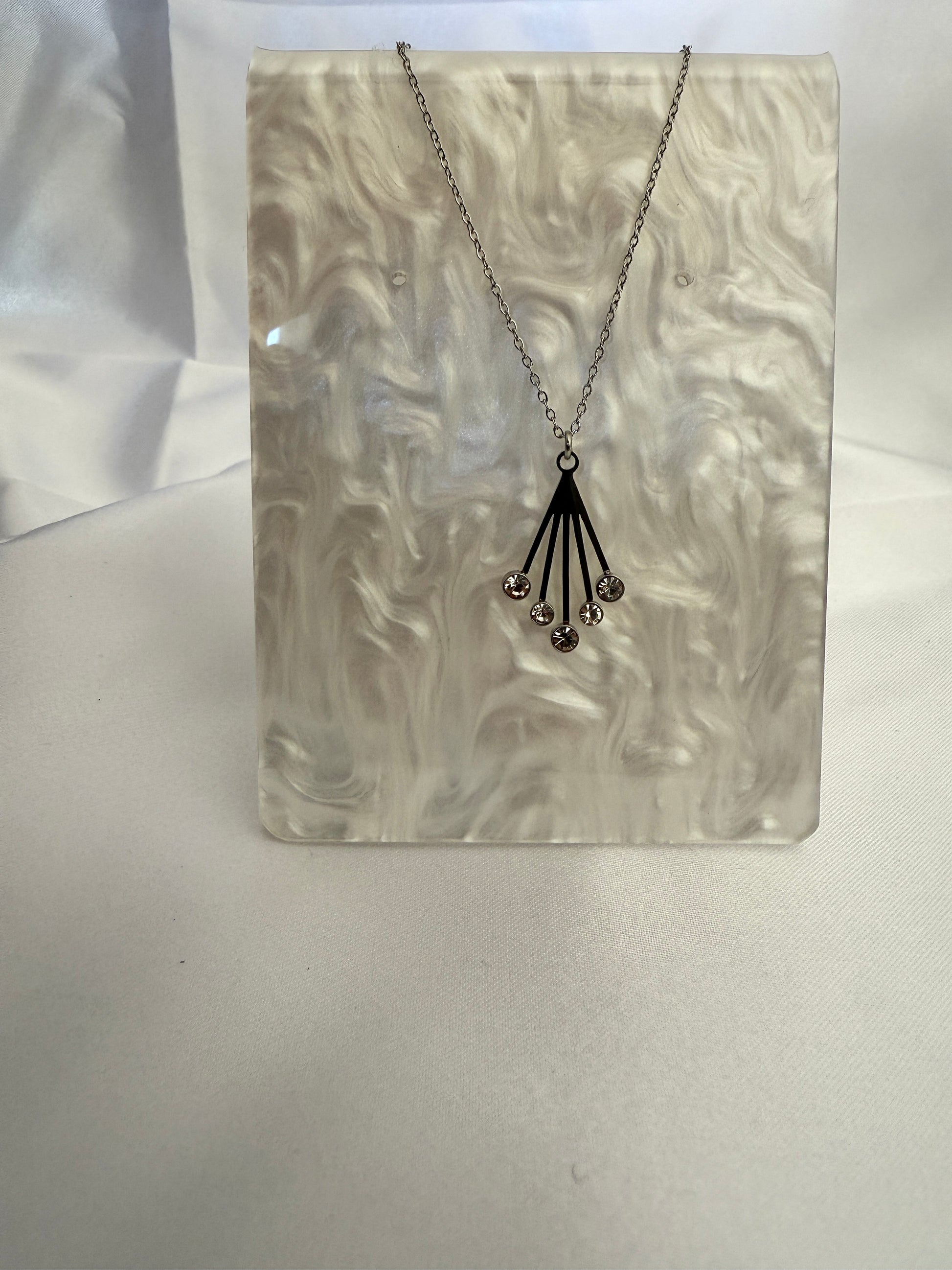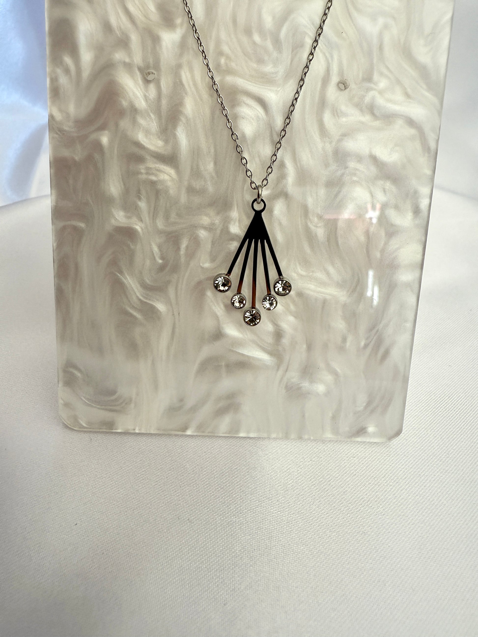Collier argenté avec plusieurs petites pierres suspendues, rappelant un jet d’eau scintillant.