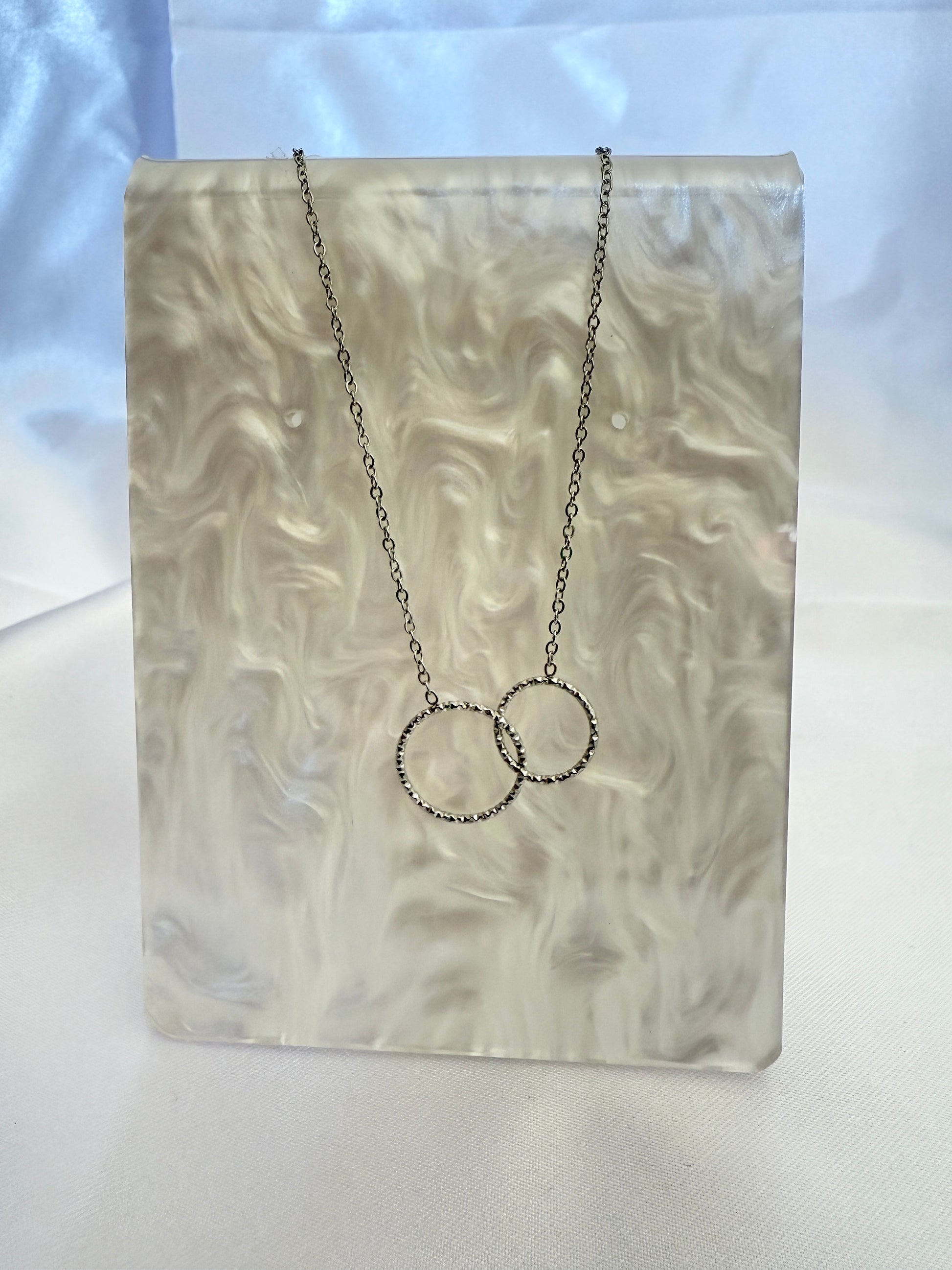 Deux anneaux entrelacés de couleur argenté, symbole de lien et d’harmonie.