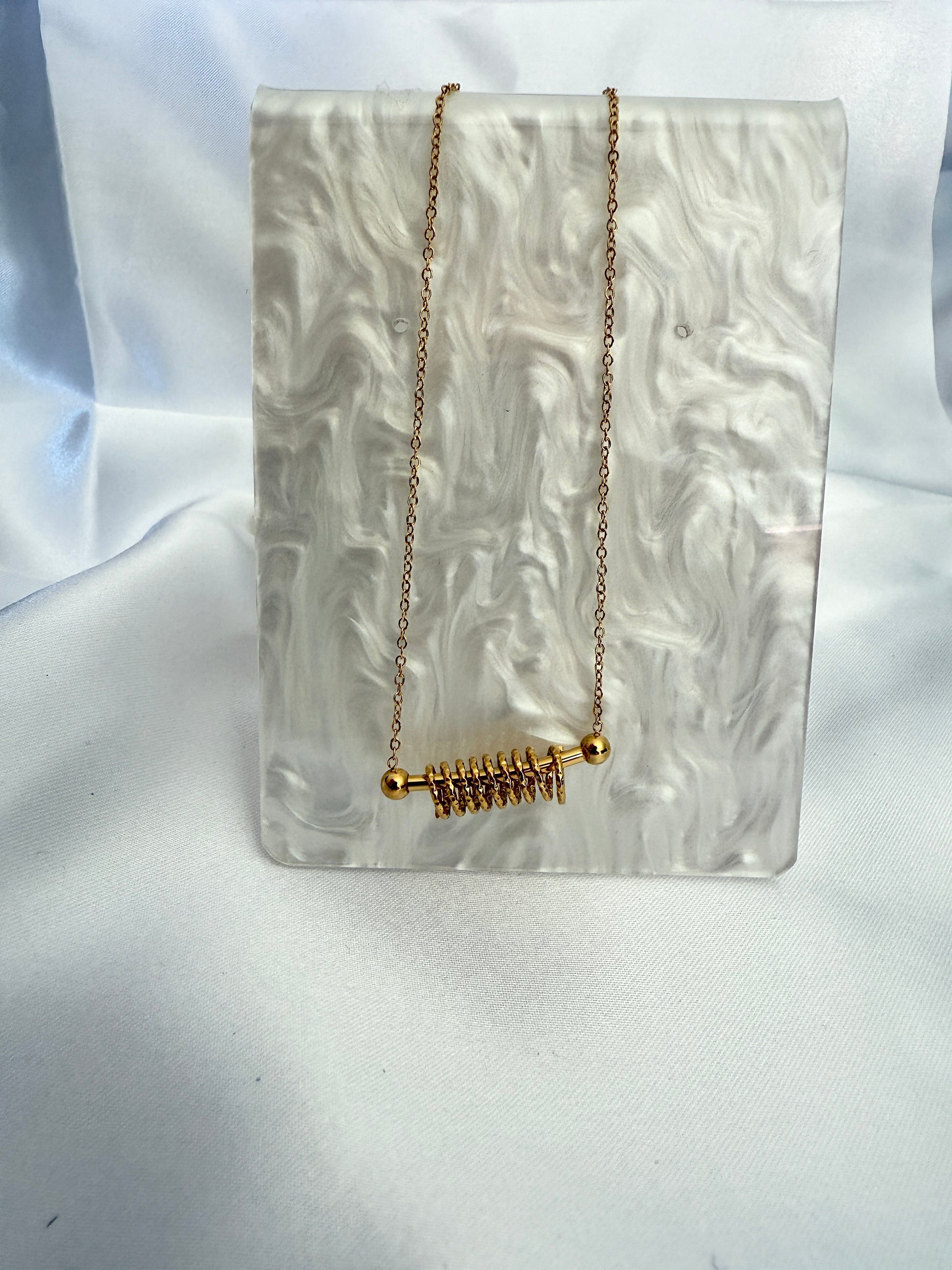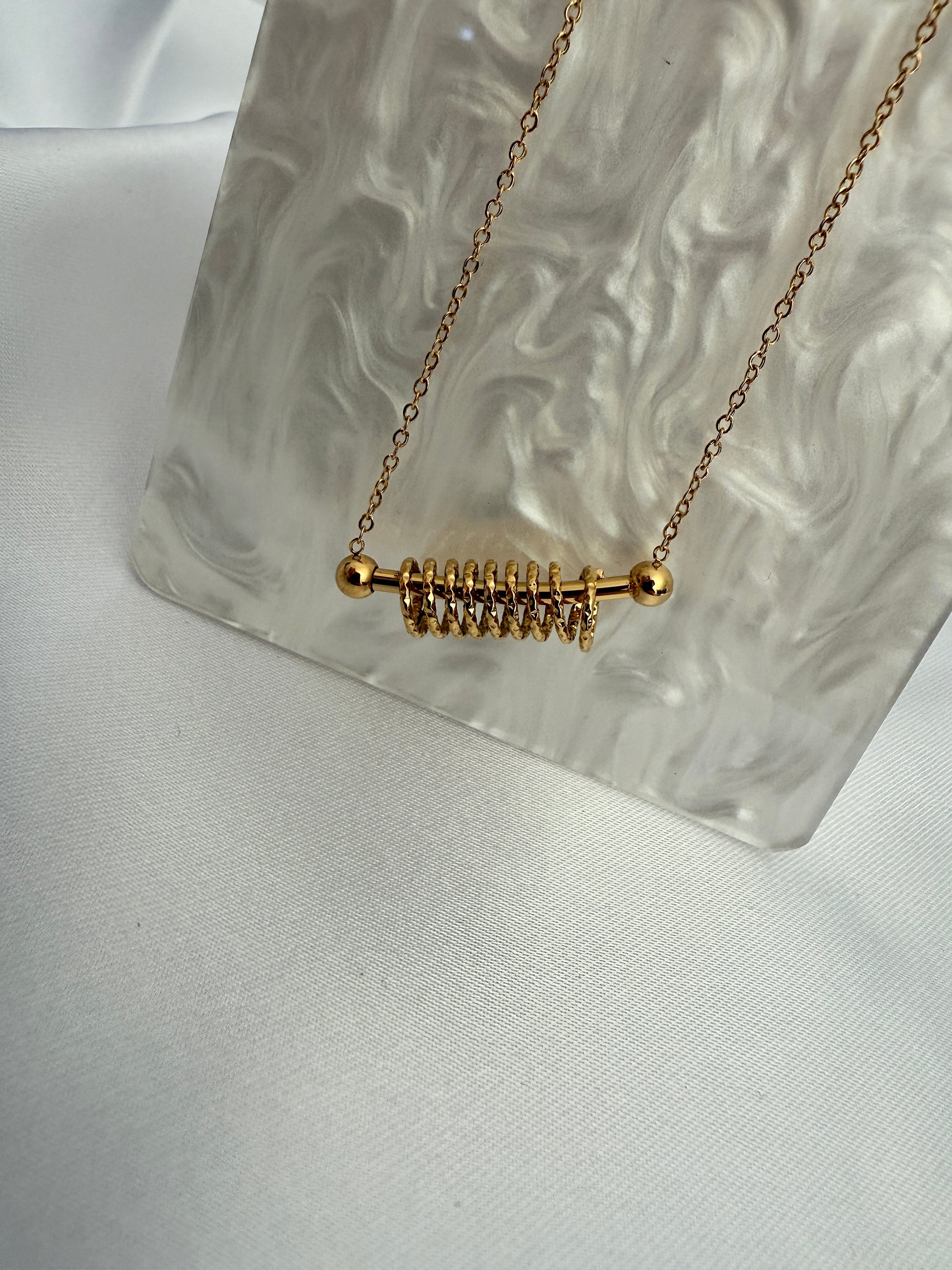Sublimez vos tenues avec ce collier fin couleur dorée, orné d’un pendentif original composé d’anneaux délicatement alignés. Son design épuré et moderne en fait un accessoire idéal pour apporter une touche sophistiquée à votre style quotidien ou pour vos occasions spéciales.