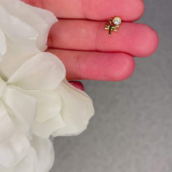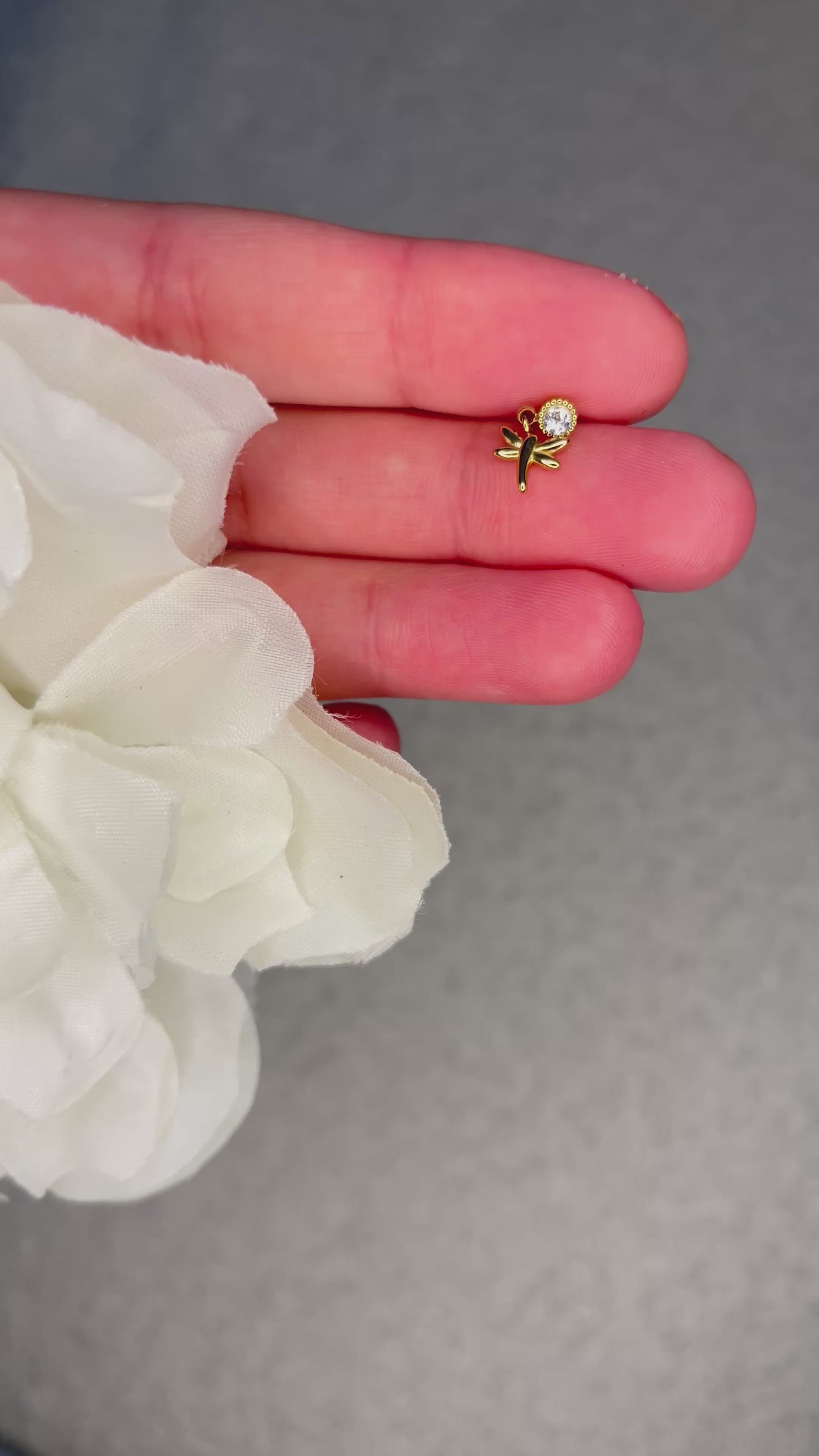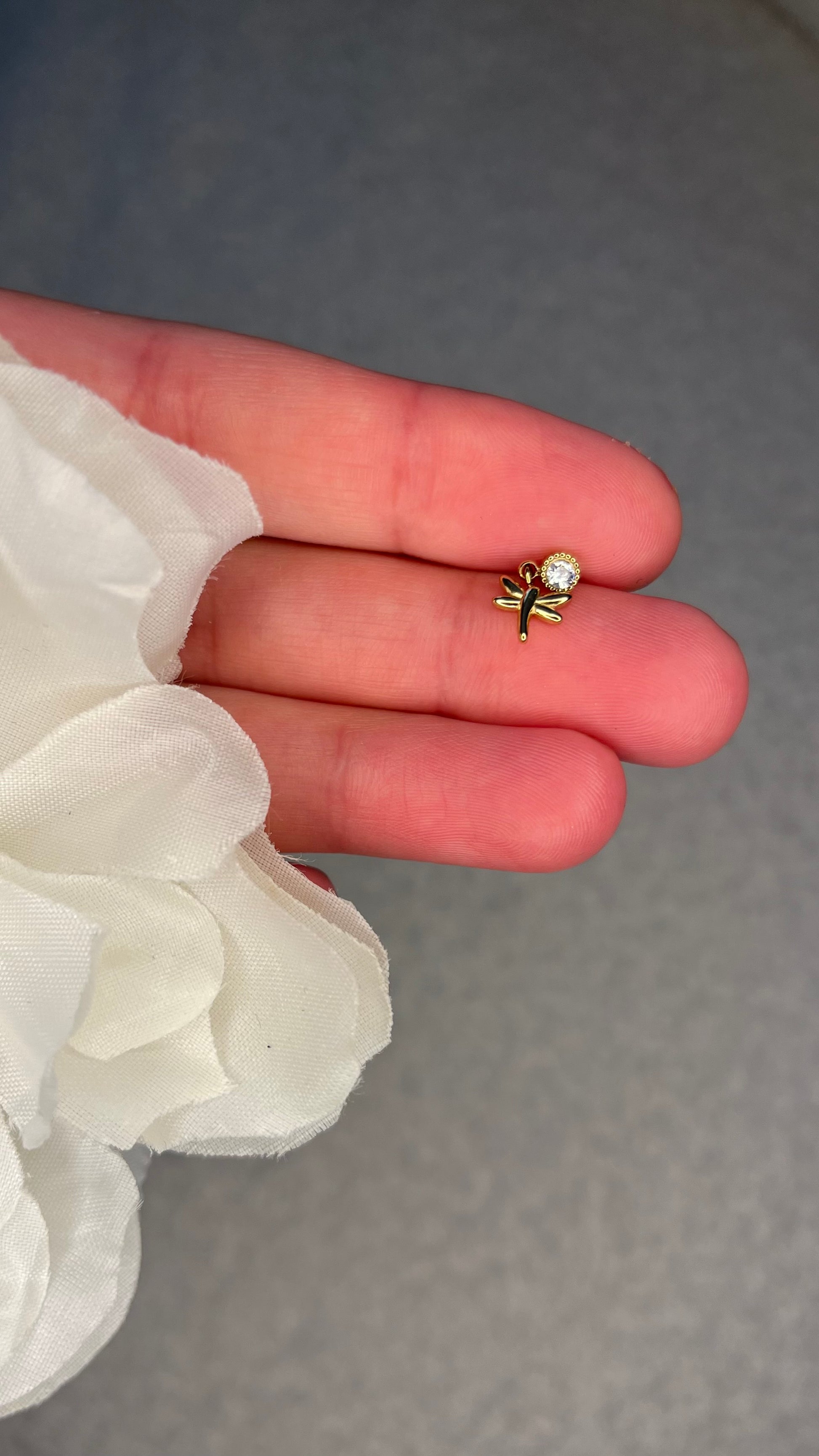 Je vous propose ce magnifique piercing d’oreille en acier inoxydable de couleur doré avec un petit diamant en forme de rond et ça petite libellule suspendu.