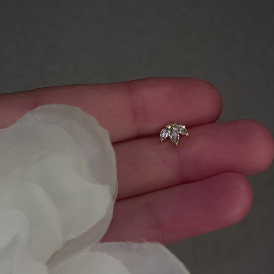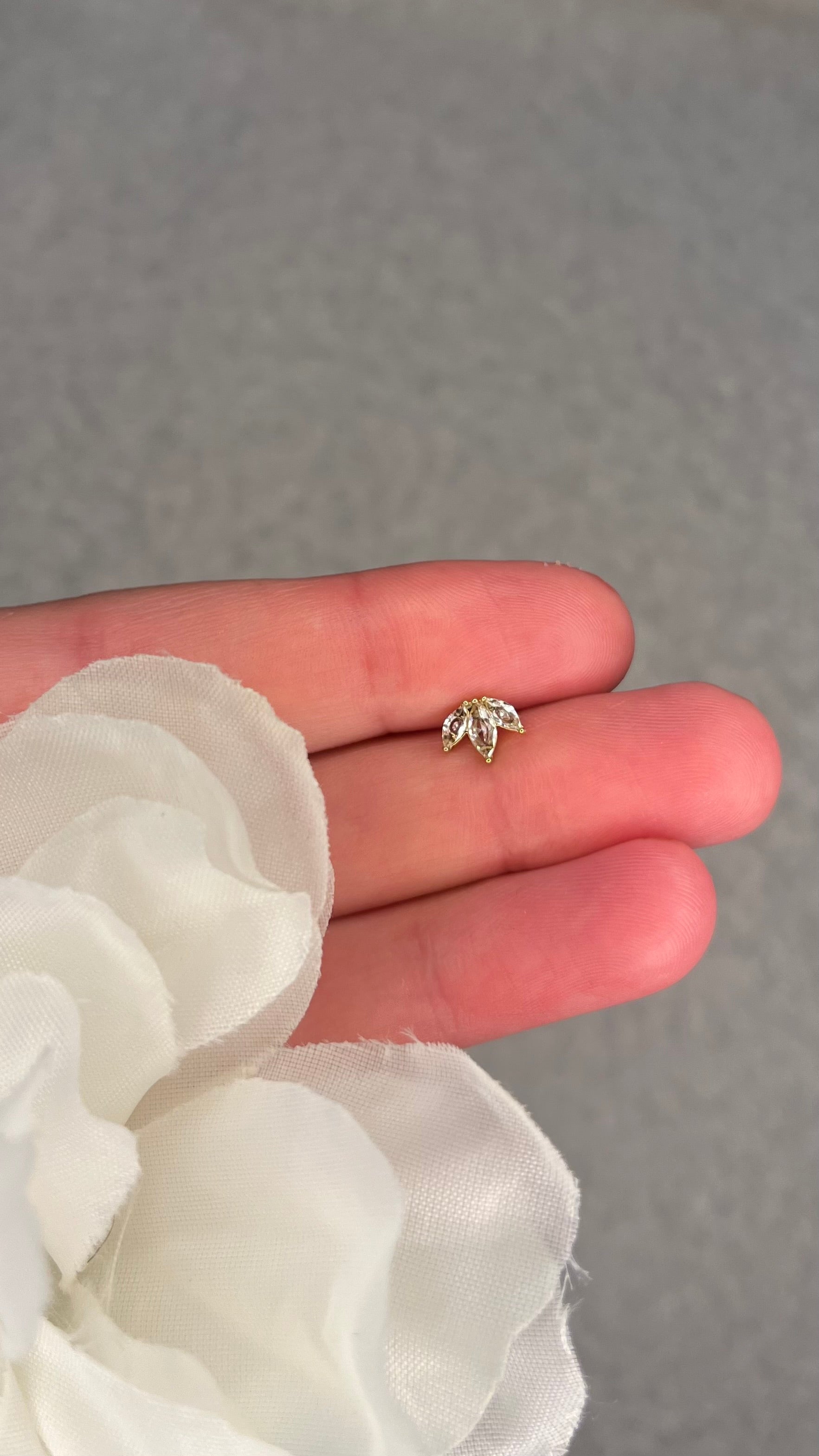 Je vous propose ce magnifique piercing d’oreille en acier inoxydable de couleur doré et 3 diamants.