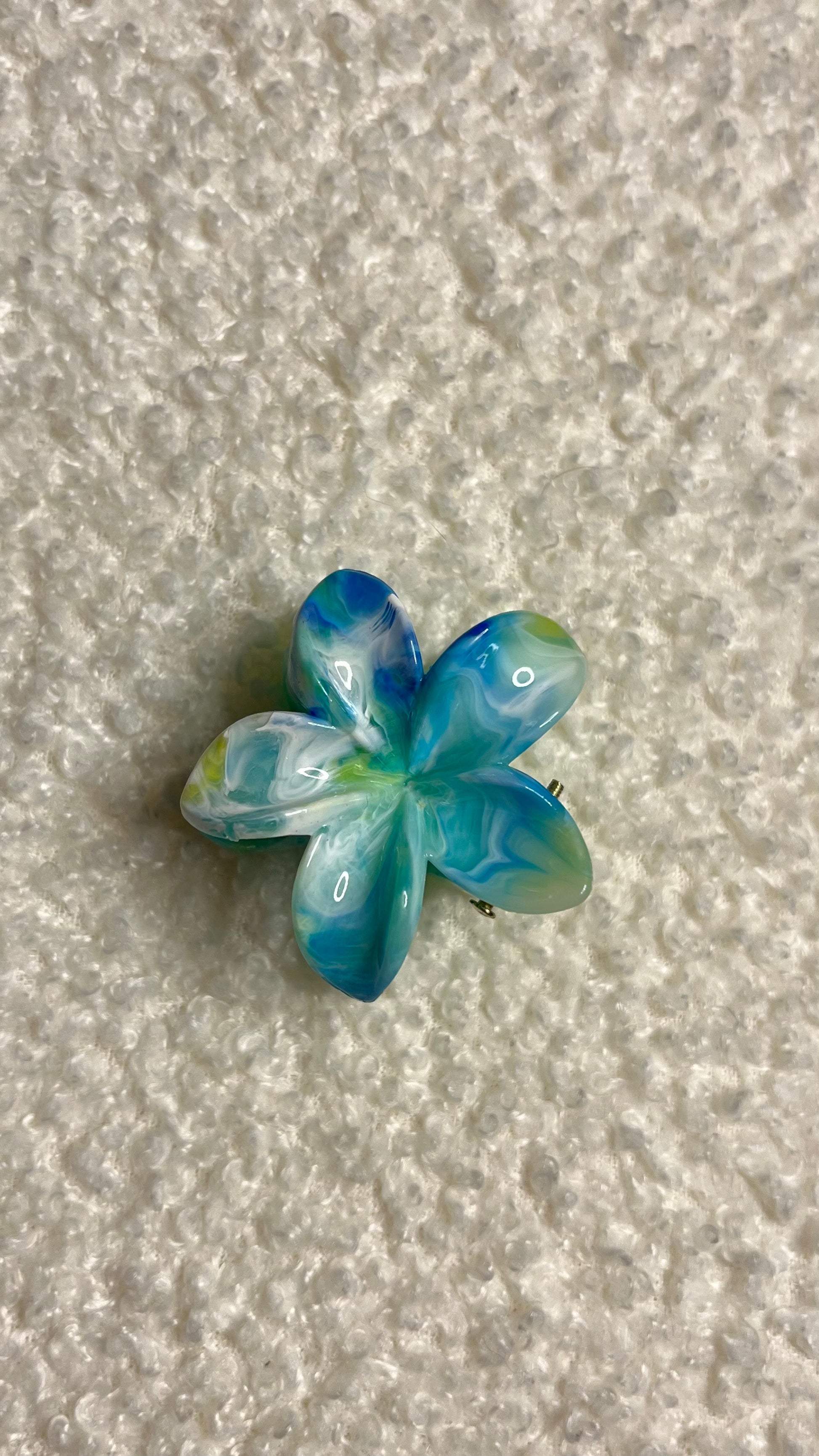 Je vous propose cette petite pince à cheveux en forme de fleurs bleu et verte.